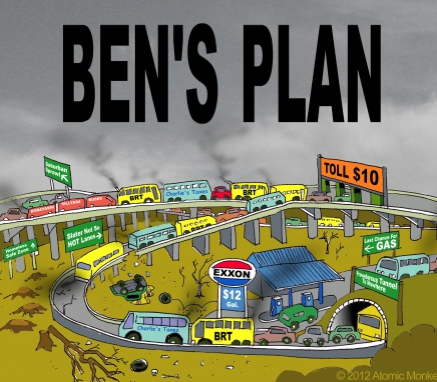 Harris Administration’s BRT plan – taking away car lanes and giving them to TheBus. We need a new cartoon – one with cars scrunched together as an empty bus rolls by in an empty bus lane. The Parody Potential is Positively Limitless!